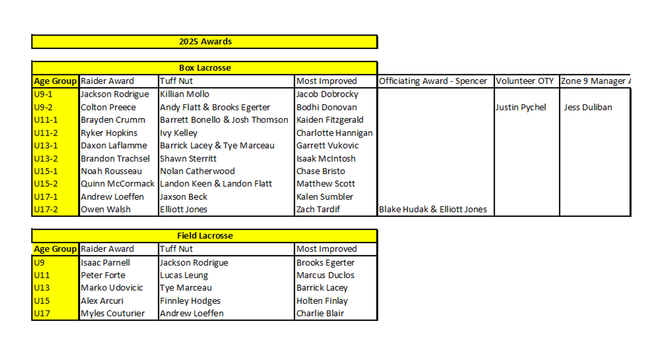 The Pelham Raiders will be hosting their Annual General Meeting on October 23rd, 2025, at 7:30 pm at the Meridian Centre in the Kinsmen Room on the second floor. The PRMLA will be going over the 2025 season highlights, including financials. All members in good standing will be eligible to vote on the nominees for the 3 available Executive Board positions: President, Secretary, and Registrar. Once voted in, these positions are to be held for a two-year term.